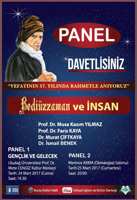 Bursa Bediüzzaman Platformu, Bursa Kültür Vakfı, İttihad Eğitim ve Kültür Derneği ve Bursa Büyükşehir Belediyesi tarafından düzenlenecek olan panel cuma ve cumartesi günleri yapılacak.