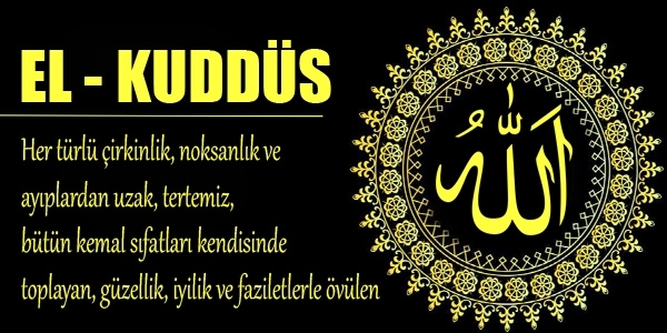 Allah Kuddüs’tür; bütün kusur ve noksanlıklardan uzaktır. Âcizlikten, fakirlikten, zaaftan ve bütün eksikliklerden münezzehtir. Bu ismin diğer bir manası ise, bütün yarattıklarını maddi ve manevi kirlerden temizleyendir.