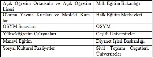 3 – Ceza İnfaz Kurumlarında her hükümlü ve tutuklunun eğitim ihtiyacı belirlenerek, ihtiyacına uygun eğitim faaliyetlerine yönlendirilmektedir. Kurumlarda uygulanan eğitim faaliyetleri ana başlıklar halinde şu şekilde sıralanabilir: